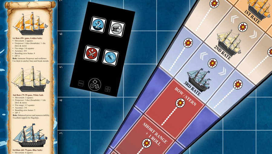 Wind plays a central role in every engagement. Changes in wind direction affect speed, turning ability, and firing opportunities, forcing commanders to plan ahead and adapt as the battle unfolds. Players must decide when to maintain formation, when to break the line, and when to commit to devastating broadsides or risky close-quarters actions. Each turn presents meaningful choices, rewarding foresight, naval discipline, and bold command decisions.