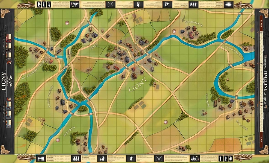 The campaign continues with the Battle of Ligny, Napoleon’s last victory. This battle focuses on aggressive French assaults against entrenched Prussian forces, where controlling towns, bridges, and key terrain determines whether the Prussian army can be broken or survive to fight again.