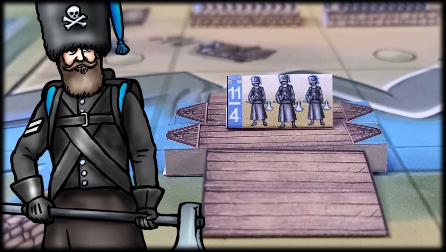 The downloadable unit sheet includes 8 sapper units and 4 build elements of each type (pontoon bridges, sandbags, and fences). You may print additional elements as needed for your battles or campaigns.